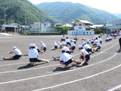 今日もたくさん体を動かします。準備体操もしっかりと。