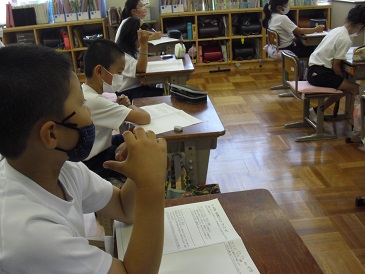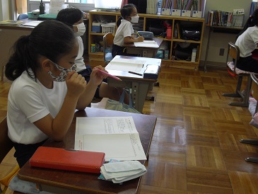 3・4年生は学級活動の時間において、自主勉強プリントの作成方法について共通理解を図っていました。