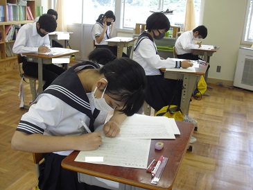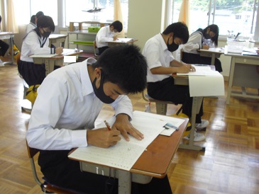本日、中学生全学年で1学期末テストを実施しています。9年生は高校入試に備え、制服で試験に臨んでいます。