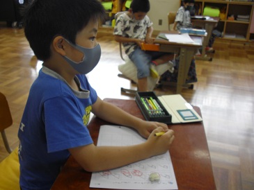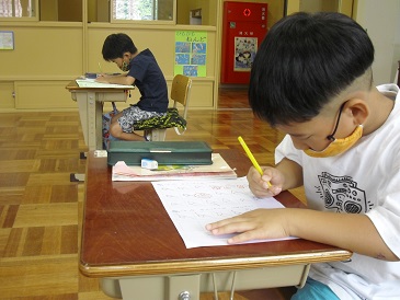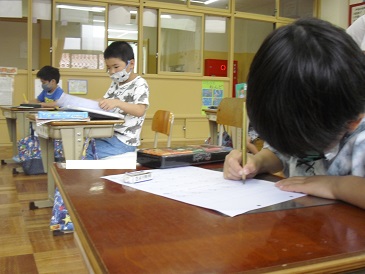 1年生は国語でカタカナの学習に取り組んでいます。一字一字丁寧に書いていました。