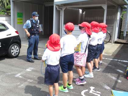 社会科見学で戸田の駐在所を訪問しました。いつも戸田の安全を守っていただいているお二人の警察官の方に、警察の仕事や子供達に守ってほしいことなどを伺いました。きちんとお話を聞けたご褒美として、特別にパトカーの運転席にも座らせていただきました。戸田駐在所のみなさま、ありがとうございました。