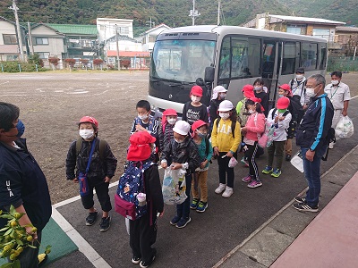 はかま滝体験活動の全日程を終え、子供たちは学校に戻ってきました。ドライバーの用務員さんや養護教諭にお礼のあいさつをして、教室に入りました。一日おつかれさまでした。