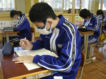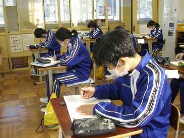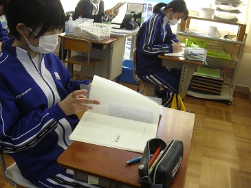 9年生は、朝活動の時間において天声人語の視写を行っていました。一字一字丁寧にワークノートへの書き込みをしていました。