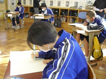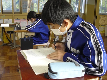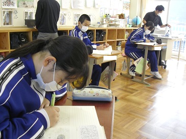 7年生は、朝活動の時間において天声人語の視写を行っていました。みんな集中して取り組んでいました。