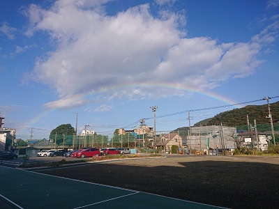 11/8(月)小中一貫学校上空に虹がかかりました!