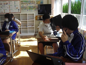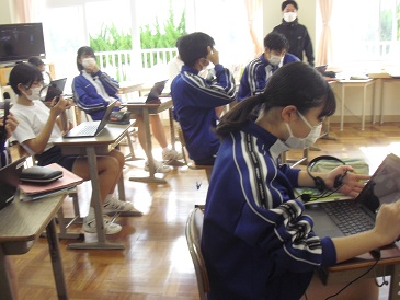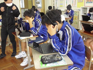 9年生は英語で「Unit5」を学習しています。今日は、Chromebook(クロームブック)を使って、英文を音読する練習を行いました。さらに音読したものを録音し、友達と評価し合いました。