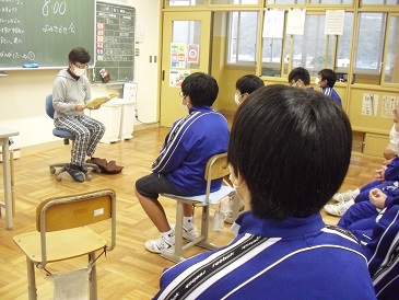 読み聞かせ倶楽部「たちばな」の皆様による読み聞かせです。朝早くにご来校いただきありがとうございました。楽しい時間を過ごすことができました。
