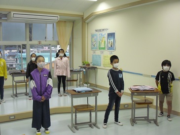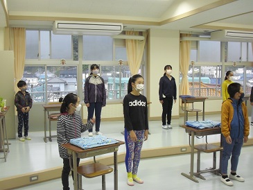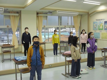 朝の学習の時間において、3・4年生は「初等部音楽発表会(潮風祭文化の部)」に向けて、音楽室で合唱練習を行っていました。
