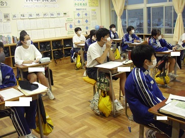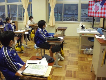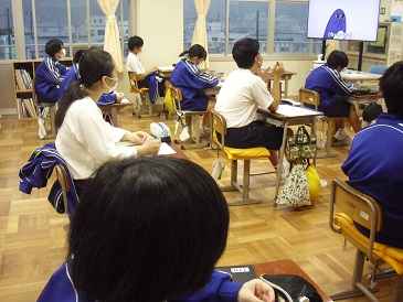 8年生は道徳で「うその研究」という資料を使って、嘘をついてしまった人の内面について話し合いました。最初に映像を視聴しました。