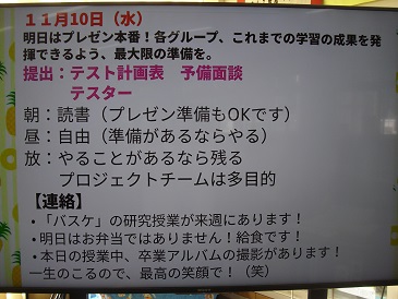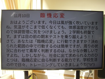 今朝の各クラスのお知らせです。大型提示装置を使って、子供たちに今日の情報を伝えています。