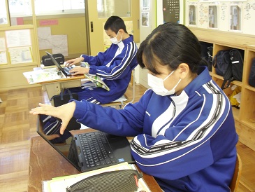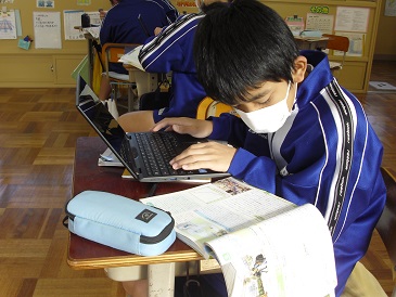 7年生は社会で「アジア州」について学習しています。学習して分かったことをChromebook(クロームブック)にレポートとしてまとめる作業を行っていました。