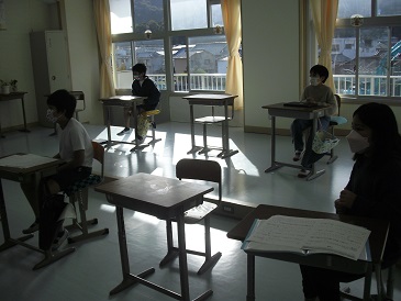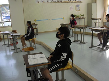 5年生は音楽で「ボディパーカッション」について学習しています。リズムに合わせて、拍手や膝をたたくなど、楽しみながら演奏していました。