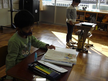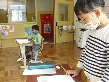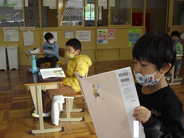 1年生は国語で「はじめは『や!』」という教材を学習しています。文中から、くまさんやきつねさんが言ったことをまとめ、紹介し合いました。