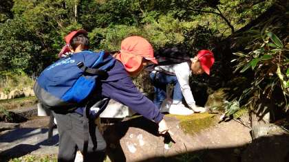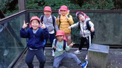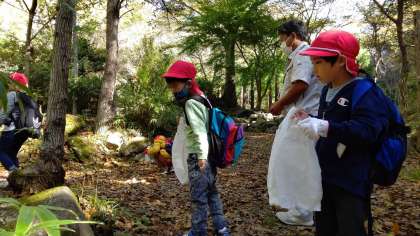 はかま滝での様子です。どんぐり拾いに夢中でした。