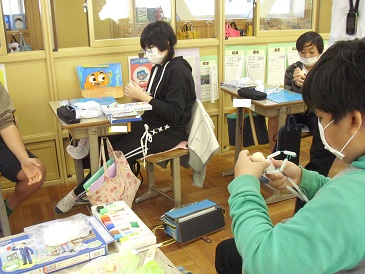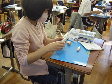 6年生は図工で「12年後のわたし」という教材を学習しています。今日は、設計図をもとに、紙粘土を使って「自分の12年後」を想像しながら立体作品をつくりました。