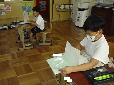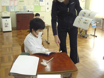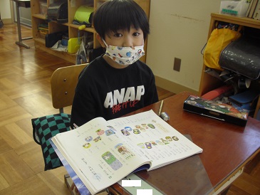 1年生は国語で「言葉のいずみ」という教材を学習しています。「日付と曜日」について、読み方を確認していました。