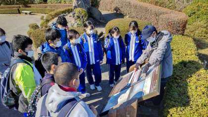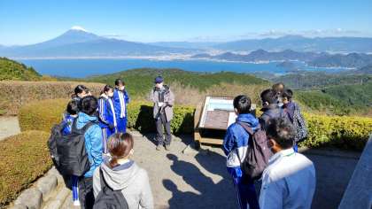 次は金冠山に向かいます。ガイドさんの話をよく聞いています。