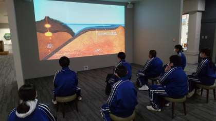 金冠山を後にして、次の目的地である「伊豆半島ジオパークミュージアム ジオリア」に行きました。ジオリアでは、日本のでき方について学習しました。