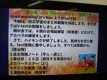 11/12(金)今朝の各クラスのお知らせ