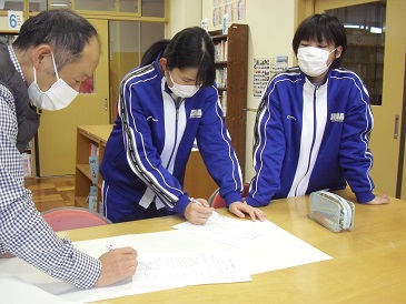 朝の活動時間に、潮風祭文化の部に向けてそれぞれの係が準備を進めました。