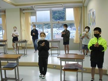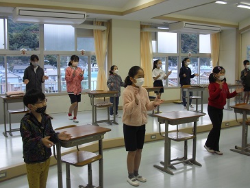 朝の学習の時間において、3・4年生は「初等部音楽発表会(潮風祭文化の部)」に向けて、音楽室でボディーパーカッションを行っていました。
