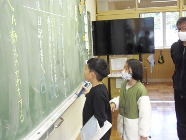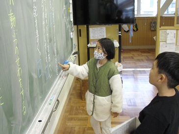 2年生は国語で「水ぞくかんのしいくいん」という説明文を学習しています。本文を読み込み、分かったことを表にまとめる作業をしました。その後、みんなに紹介しました。