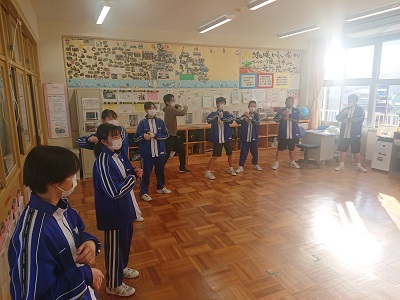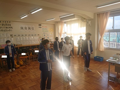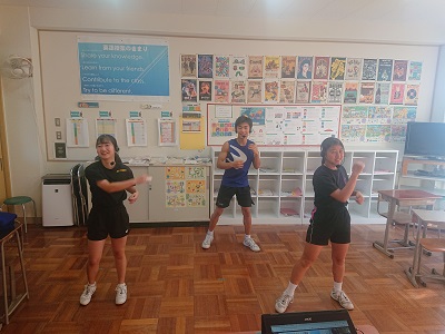 朝の時間、健康委員会が主催し、5年生以上で「マッスルトレーニング」を行いました。各クラスをオンラインで結び、みんなで体を動かし、良い汗をかきました。