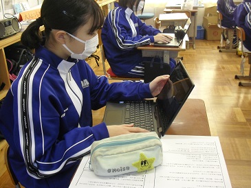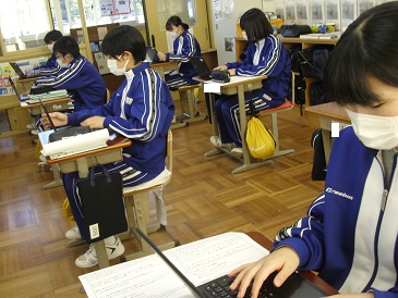 9年生の朝活動の様子です。9年生は、Chromebook(クロームブック)を使い、潮風祭文化の部に向けた個人の思いを打ち込んでいました。