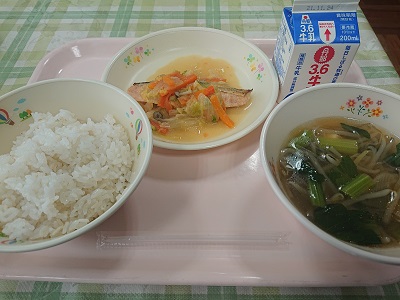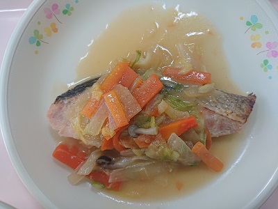 今日は、北海道の郷土料理「鮭のちゃんちゃん焼き」でした。今日も美味しくいただきました。ご馳走様でした。