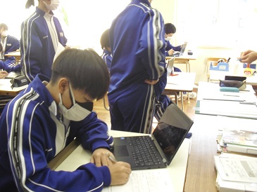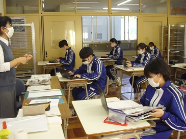 9年生は美術で「文化の出会いがもたらしたもの」という教材を学習しています。それぞれが気に入った仏像を鑑賞し、気が付いたことや感じたことをワークシートにまとめました。