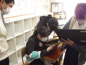 6年生は英語で「Unit6」を学習しています。最初にChromebook(クロームブック)を使って、間違い探しをしていました。ALTもサポートしていました。