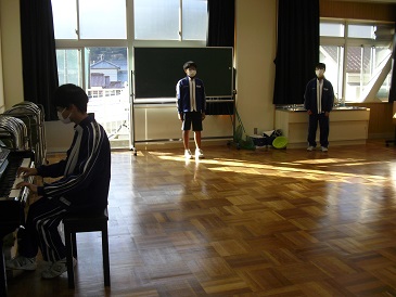 8年生は、朝の活動時間において、来週に迫った潮風祭文化の部に向けて合唱練習を行いました。