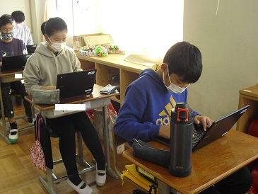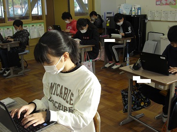 6年生の朝活動の様子です。Chromebook(クロームブック)でタイピング練習を行っていました。