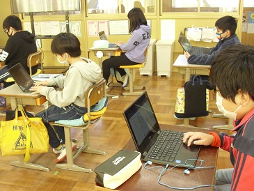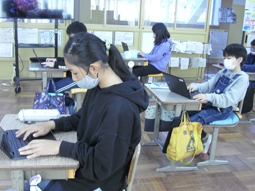 5年生の朝活動の様子です。Chromebook(クロームブック)でタイピング練習を行っていました。