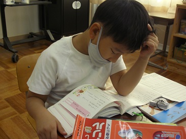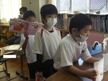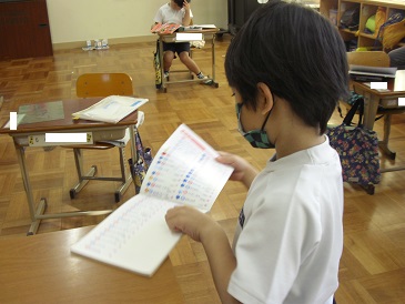 1年生の朝学習の様子です。詩の暗唱及び暗唱テストを行っていました。
