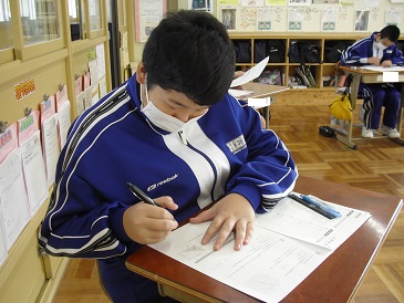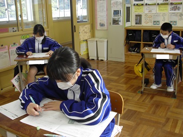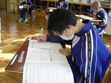 7年生は数学で「比例・反比例」について学習しています。今日は、既習事項の確認として単元テストを行いました。