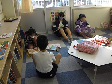 4年生は国語で「良書に触れよう」という学習を行っています。学校図書館で、興味のある本をじっくりと読んでいました。