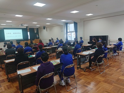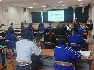 9年生は進路説明会を実施し、学年主任から大事な進路選択について話がありました。