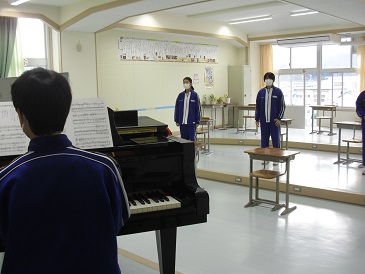 8年生は、朝の活動時間において、来週開催予定の潮風祭文化の部に向けて合唱練習を行いました。