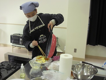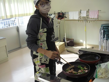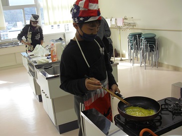 6年生は家庭科で「炒める学習」としてスクランブルエッグと野菜炒めを作りました。感染対策の観点から、準備から片付けまで、誰にも頼らず個人での実習となりました。