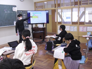 5年生は算数で「図形の面積」について学習しています。今日は、三角形の面積の求め方について理解を深めました。