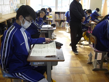2学期も残りあと1か月程度となりました。8年生は技術で、2学期確認テストを行いました。みんな真剣に取り組んでいました。