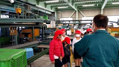 3年生はJA戸田みかん選果場での見学です。実際に機械を動かしていただきました。ありがとうございました。