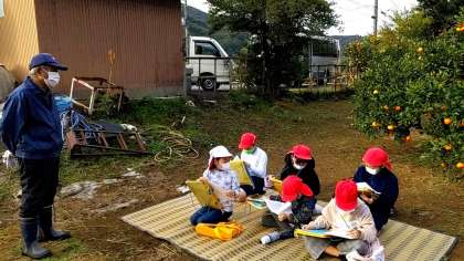 「すずきみかん園」の方から話をうかがった後、みかん狩りをしました。