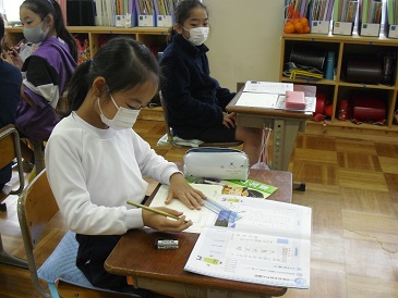 3年生は書写の時間において、金鉛筆を使って硬筆を行っていました。みんな丁寧に手紙の書き方を学習していました。