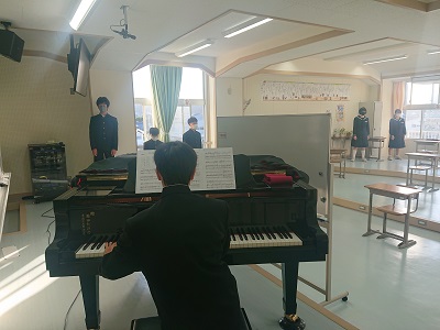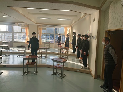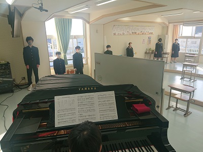 8年生は、朝の活動時間において、午後に開催する「潮風祭文化の部」に向けて合唱練習を行いました。みんなで向き合い、チェックをしながら練習をしていました。