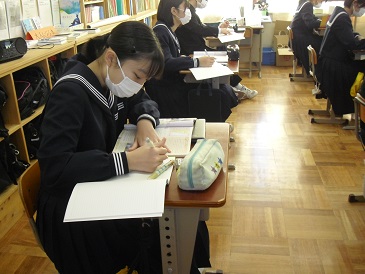 9年生は社会で公民分野について学習しています。今日は、地方自治について教科書や資料集などを使って確認しました。