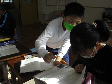3年生は国語で「モチモチの木」という教材を学習しています。最初に全員で一通り読み、内容理解に努めました。