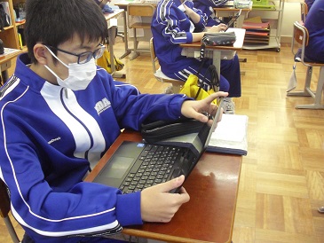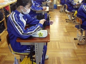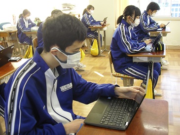 9年生の朝学習の様子です。Chromebook(クロームブック)を使って、自主学習を進めていました。
