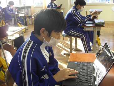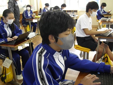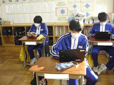 8年生の朝学習の様子です。Chromebook(クロームブック)や教科書等を使って、自主学習を進めていました。